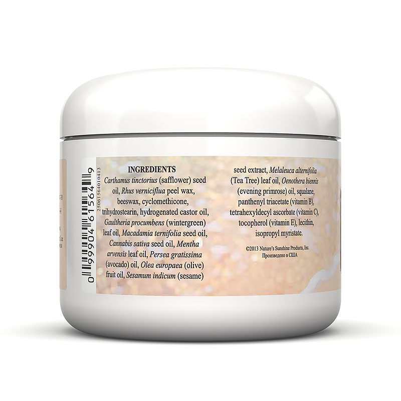 Масло сафлора красильного, кожура сумаха лакового, циклометикон, трегидроксистеорин, гидрогинезированное касторовое масло, масло грушанки, масло из листьев мелалеуки очереднолистной (чайное дерево), масло австралийского ореха, масло семян конопли посевной, масло из листьев мяты полевой, масло авокадо, оливковое масло, масло кунжута, изопропил миристат, лецитин, токоферол (витамин Е), масло энотеры (примула вечерняя), сквален, тетрагексилдецил аскорбат (витамин С), пантенил триацетат.
