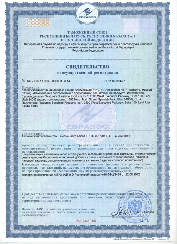 БАД к пище Антиоксидант НСП является источником флаволигнанов, ликопина, липоевой кислоты, дополнительным источником витамина Е.
