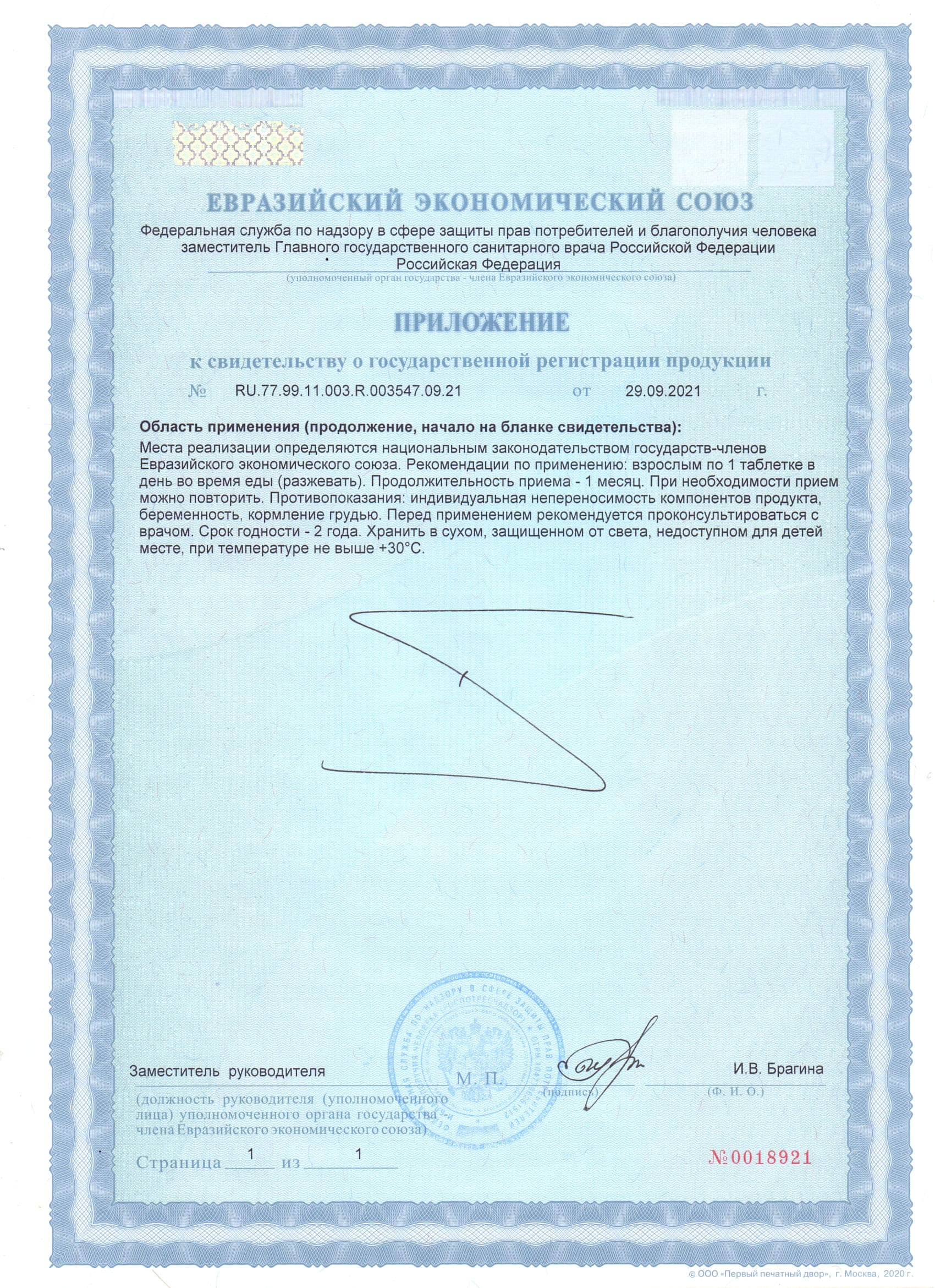 Взрослым по 1 таблетке в день во время еды, разжевать. Продолжительность приема – 1 месяц. При необходимости прием можно повторить. Противопоказания: Индивидуальная непереносимость компонентов продукта, беременность, кормление грудью. Перед применением рекомендуется проконсультироваться с врачом Условия хранения: Хранить в сухом, защищенном от света, недоступном для детей месте, при температуре не выше +30С.